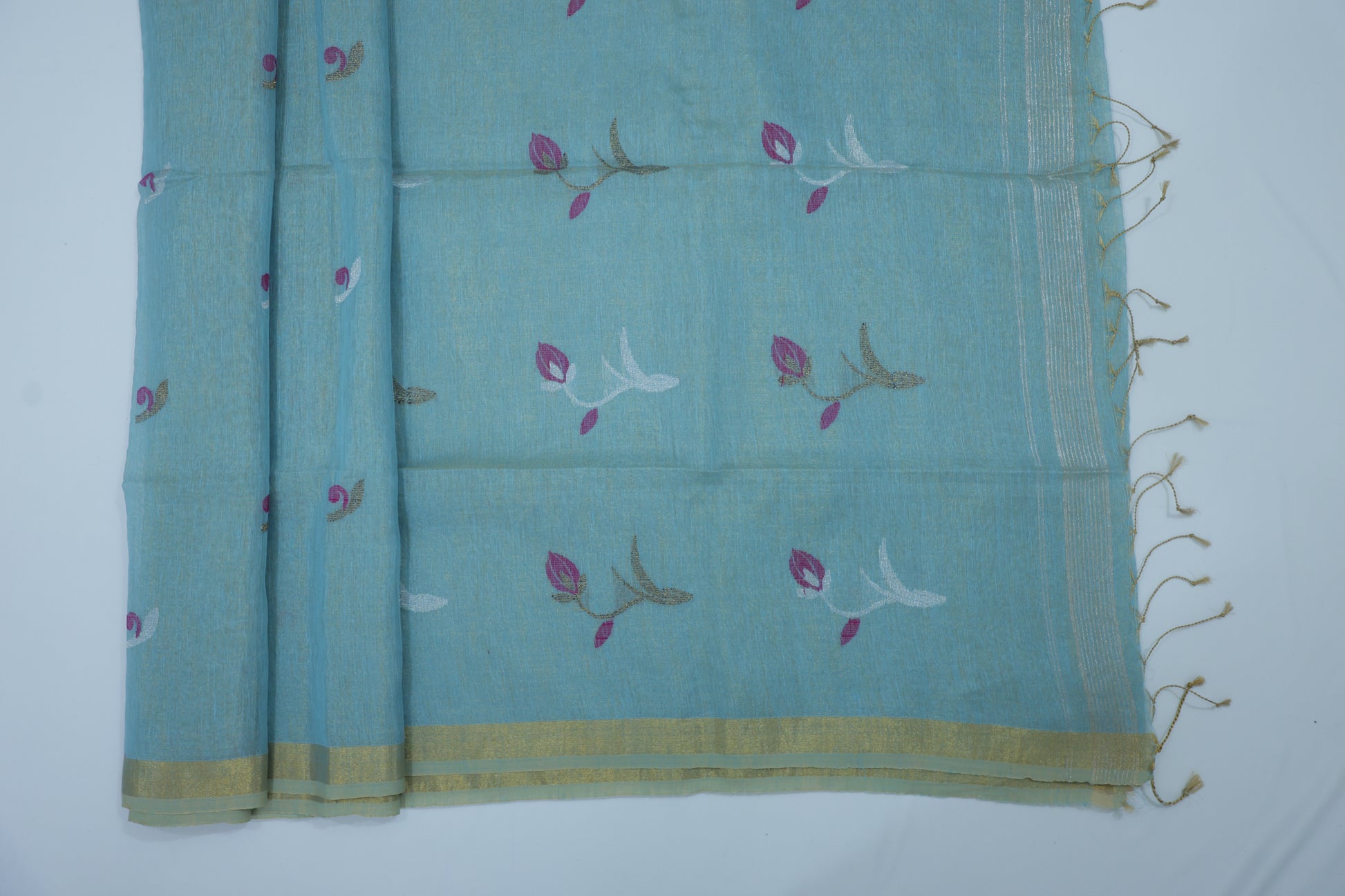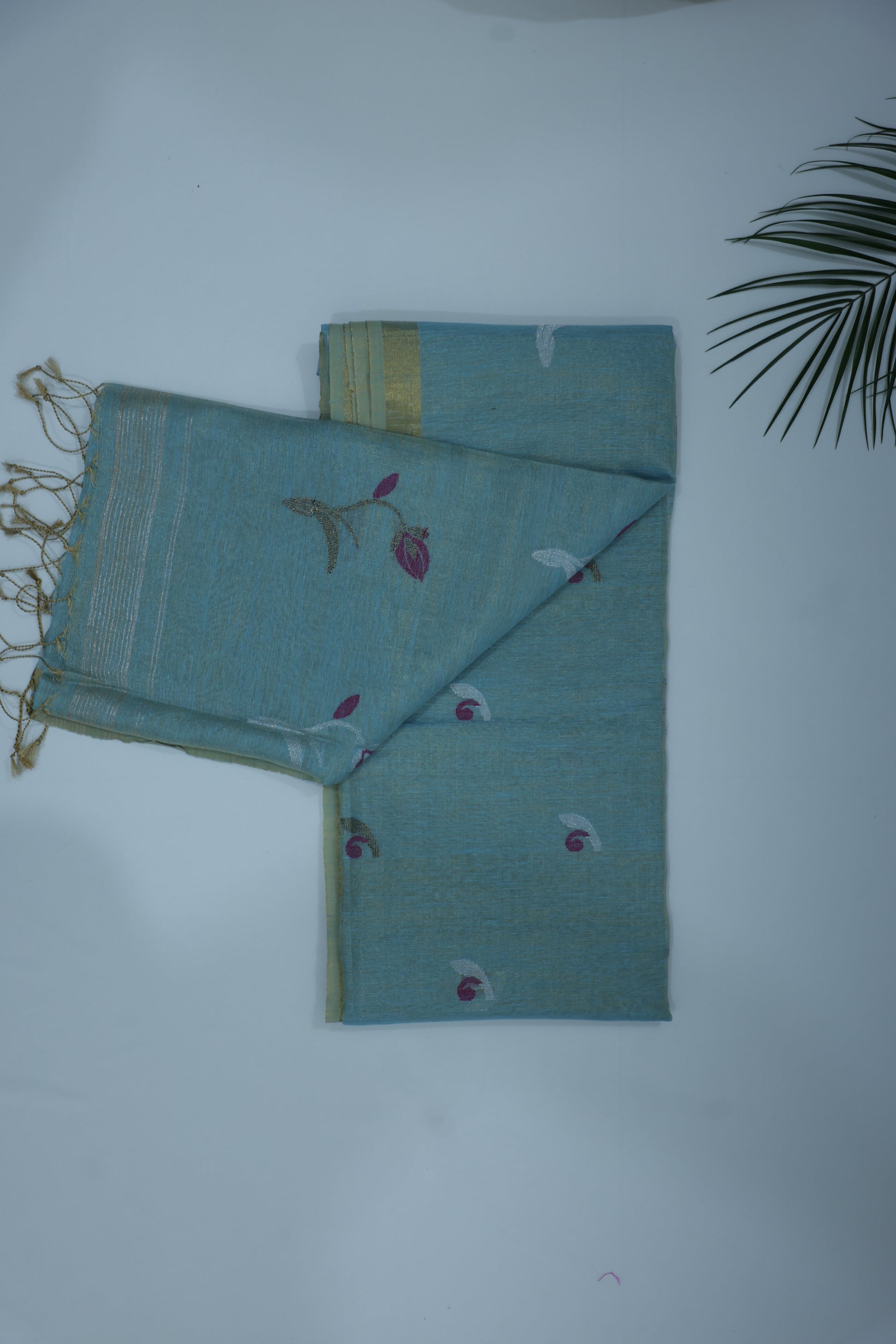 Blue Tissue Linen Saree- Tulips