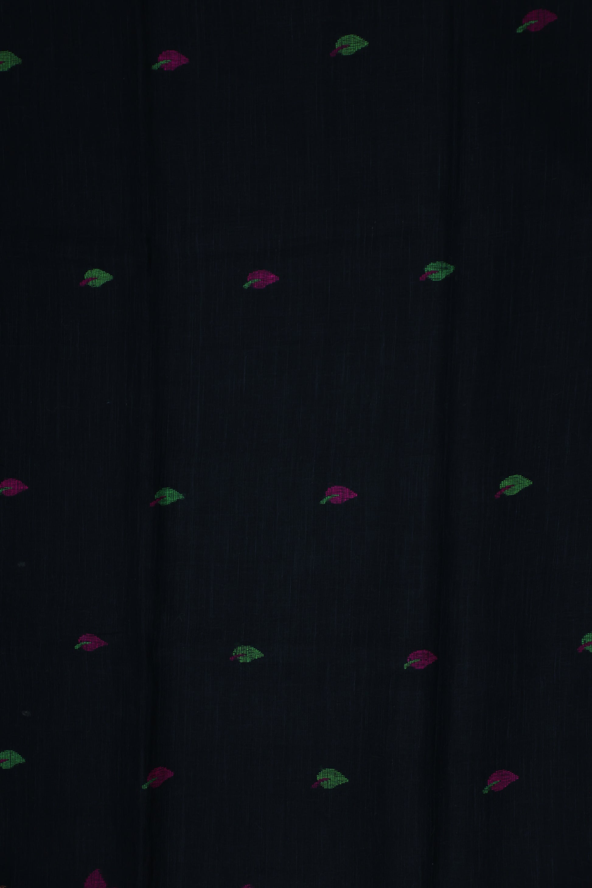 This Black Linen Jamdani Saree brings a playful splash of color with its handwoven leaf motifs in vibrant green and pink dancing across the body. The palla blooms with matching handwoven flower motifs, making it a lively and elegant choice for any occasion. Light, breathable linen ensures you stay comfortable while turning heads with this cheerful, handcrafted masterpiece.