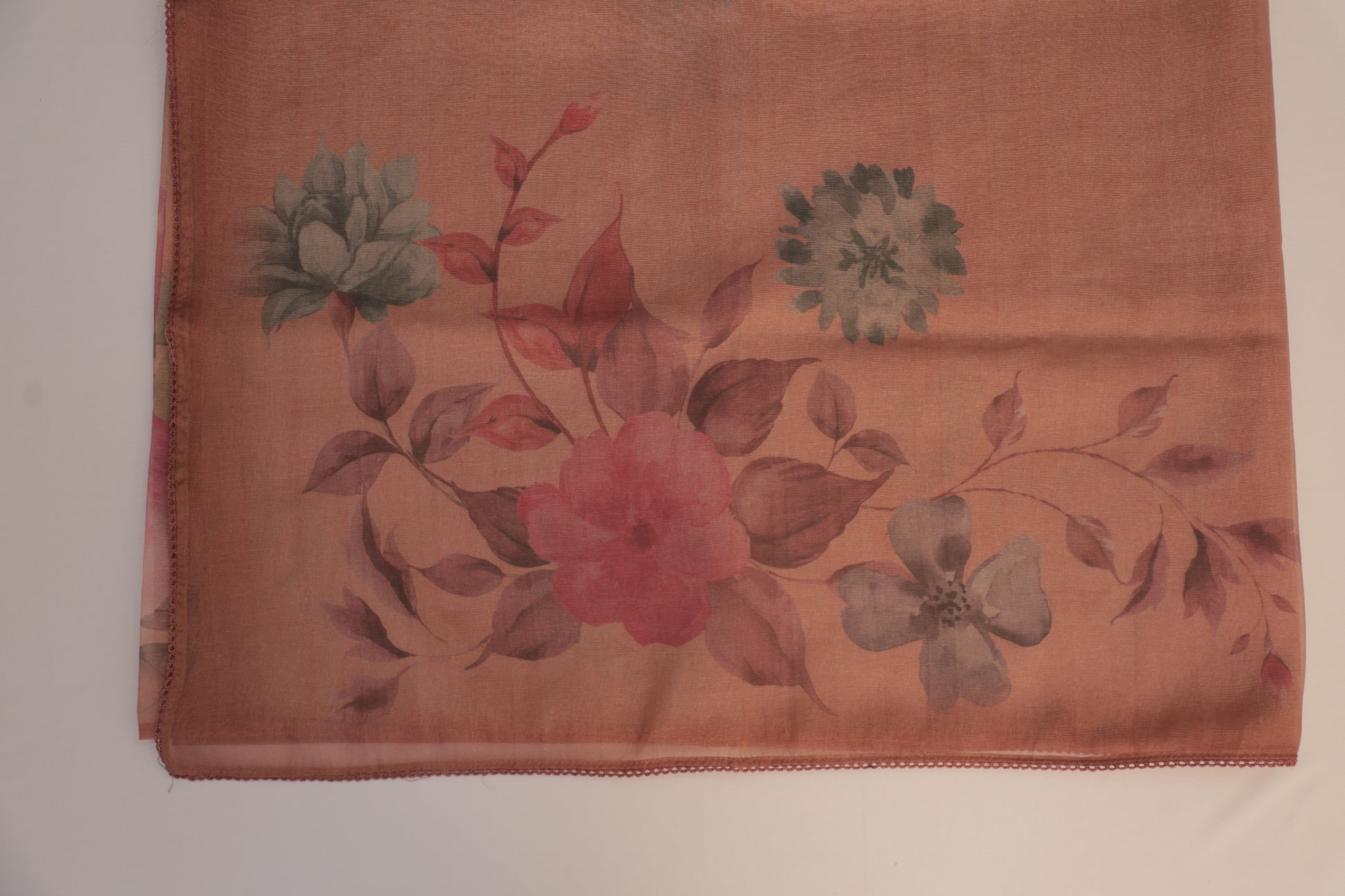 Transform your special occasion look with this captivating Orangish Peach Crush Tissue Saree. The elegant floral digital prints dance across the soft fabric, while elegant crochet lace borders add a touch of sophistication to both edges. Comes complete with a matching running blouse piece featuring the same beautiful lace borders for sleeves. This budget-friendly ensemble delivers comfort and style without the premium price tag—perfect for making a lasting impression at any celebration.