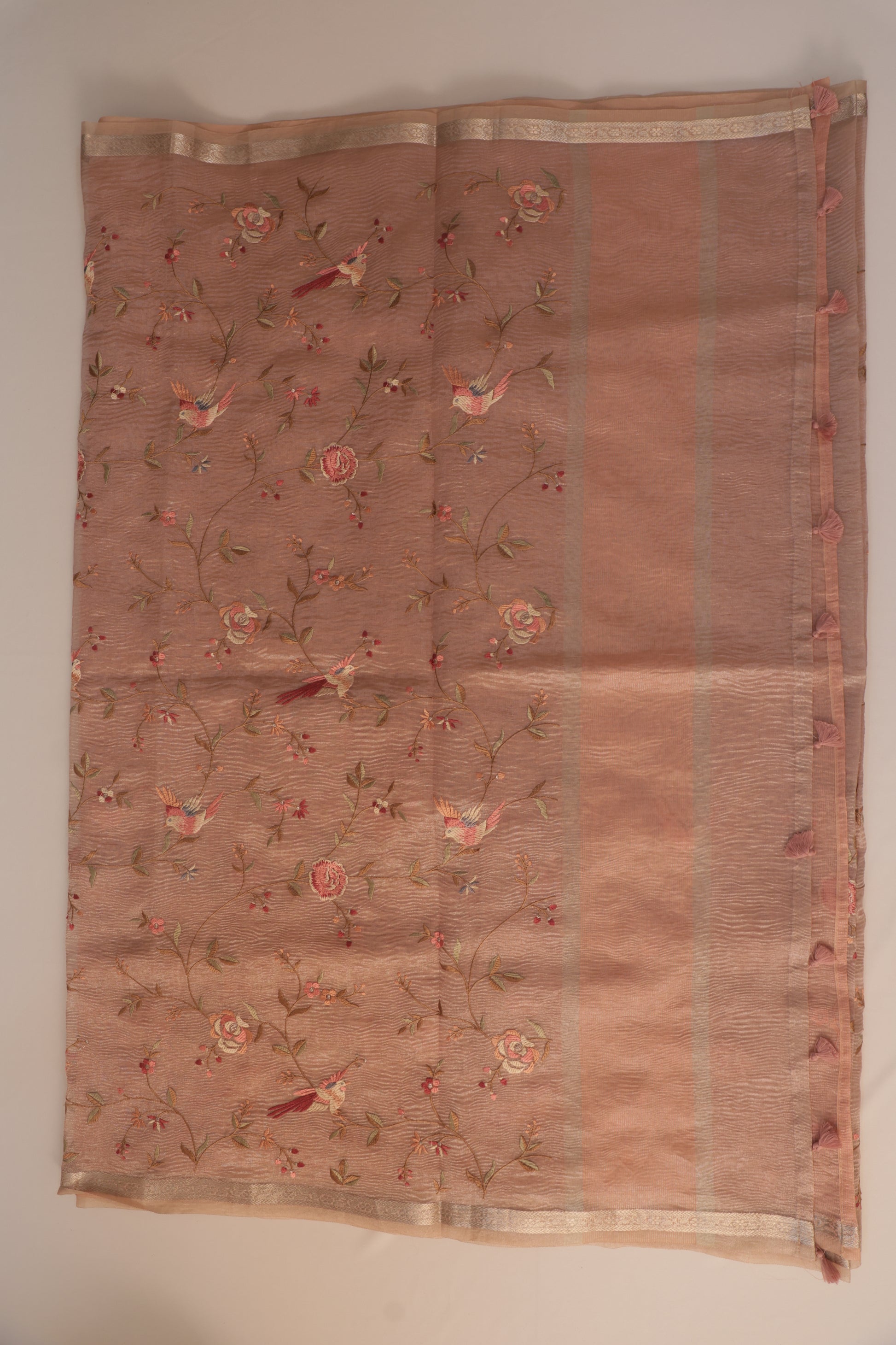 Pastel Pink Crush Tissue Saree with Parsi Gara embroidery