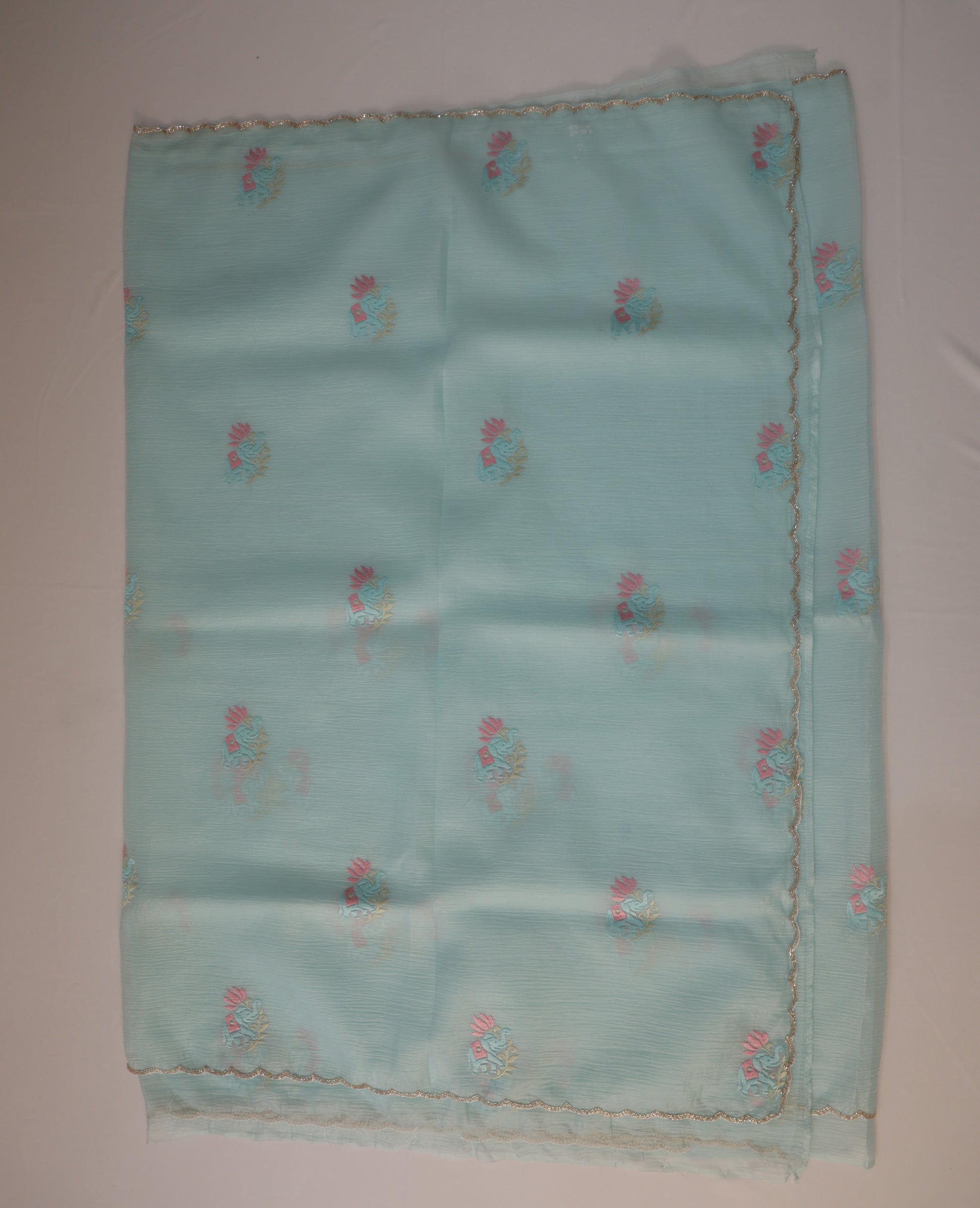 Channel your inner Bollywood diva with our Sea Blue Crush Tissue Saree! Adorable elephant motifs dance across the fabric like they're starring in their own movie, while glamorous scalloped borders sparkle with red-carpet-worthy beadwork. The matching blouse piece is ready for your star moment! This easy-to-drape showstopper wraps you in the most camera-ready shade of blue that'll make pastel lovers swoon. Get ready for your paparazzi moment—because this stunning sea-inspired shade ensures you're the celebrity everyone notices at the party!